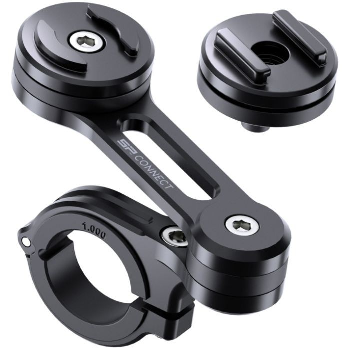 Bringen Sie mit der Motorrad Befestigung Ihre SP Connect Handyhülle oder andere SP Connect kompatible Geräte an Ihrem Motorrad an. Die Halterung ist CNC gefräst aus Aluminium und passt zu Standard- und übergrossen Lenkern (0,875 / 1,0 / 1,125 / 1,25 Zoll Durchmesser).