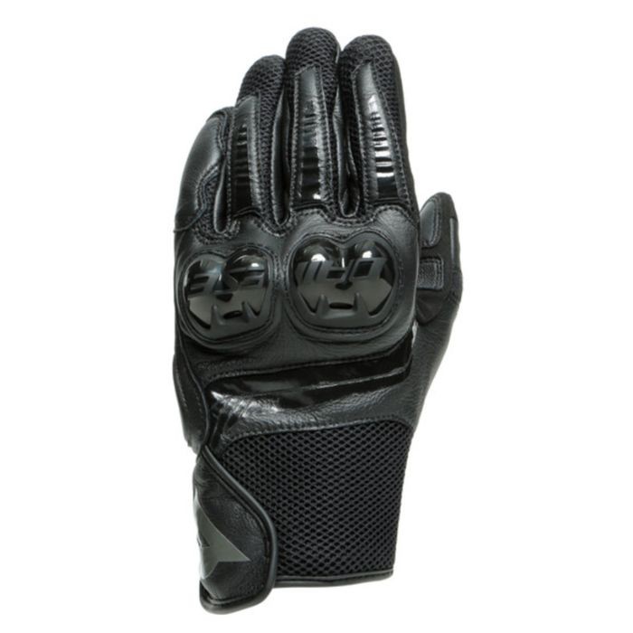 Vielseitige und bequeme kurze Unisex-Handschuhe Dainese Mig 3 aus Leder an den besonders exponierten Stellen, mit Handflächen aus weichem Amica-Wildleder und belüftetem Mesh für maximalen Komfort auch an heißen Tagen. Ergonomische Knöchelprotektoren aus TPU. Zertifiziert nach EN13594.