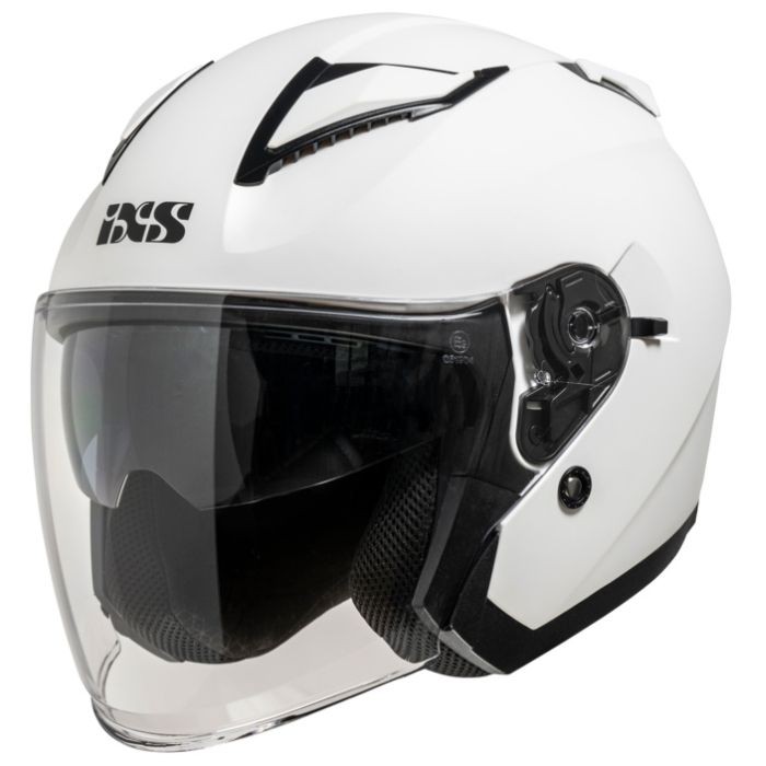 Jet-Helm mit langes Visier und integrierte Sonnenblende.
