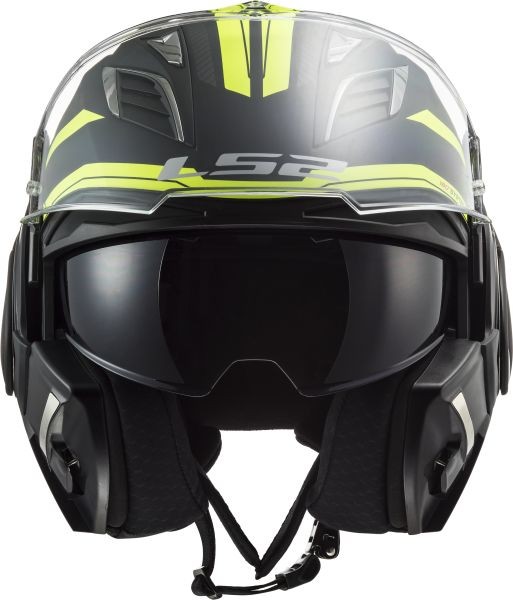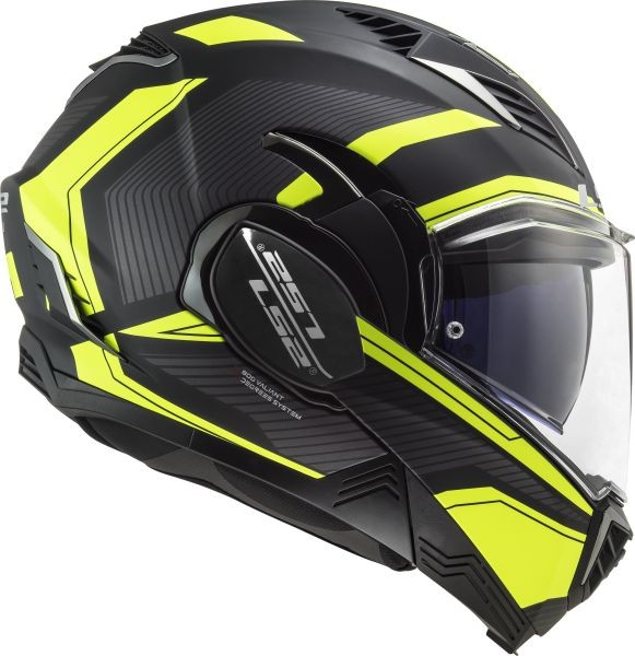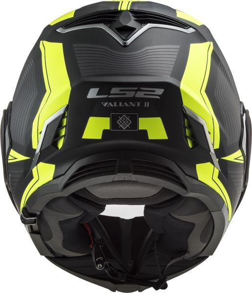 Die Erfolgsgeschichte Valiant-II geht weiter -Dieser weiter entwickelte Modularhelm aus dem Hause LS2 ist sowohl als Integral wie Jet zugelassen. Das Kinnteil kann komplett nach hinten geklappt werden - somit ist das Fahren beim FF900 VALIANT-II sowohl als offener (Jet) und geschlossener Helm (Integral) möglich. Die integrierte Sonnenblende komplettiert diesen Multi-Funktionshelm. Aussenschale 2 Aussenschalen aus KPA (Kinetic Polymer Alloy) Prüfnorm ECE22-05 - sowohl als Integral wie JetVisier quick-release Visiermechanismus ohne Kittplatten (SR2S); 3D Visier optische Klasse 1, inklusive Pinlock Max Vision Anti-BeschlagsscheibeBelüftung einfach bedienbares, effizientes Belüftungs- und Entlüftungssystem dank EPS-Luftkanälen mit regulierbaren Lufteinlässen vorne und Luftabzug hintenInnenfutter 3D Laser geschnittenes komplett herausnehmbares, waschbares, anti-bakterielles 'soft-touch' Innenfutter mit emergency release
