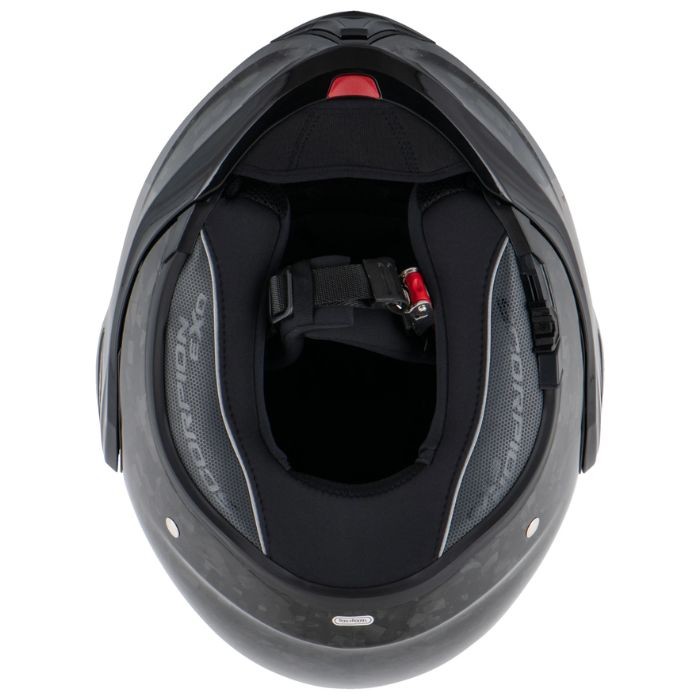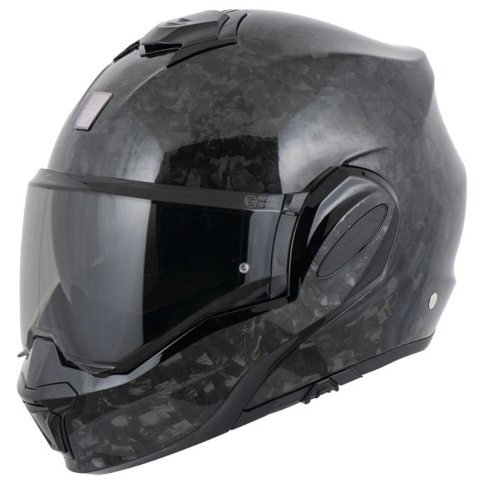 Scorpions Flip-Back-Meisterwerk kommt nun auch mit einer Carbon-Verbundschale. EXO-TECH EVO Carbon ist ein leichter Klapphelm mit einfacher Bedienung, praktischen Funktionen sowie einer Kinnteilverriegelung für optimale Sicherheit.