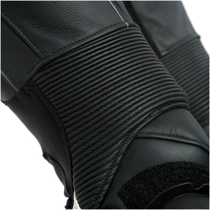 Dainese steht für Sicherheit: Verbundprotektoren an Ellbogen und Knien, weiche Pro-Shape 2.0 Hüftprotektoren und die Konstruktion mit schwimmender Schulter mit Verbundprotektoren und Aluminiumplatten, austauschbar und personalisierbar. Die Metallplatten an den Schultern – ein Markenzeichen und ein exklusives Patent von Dainese – unterstützen das Rutschen bei einem Sturz, sodass gefährliche Überschläge vermieden werden. Ein wesentlicher Unterschied im Vergleich zu Kunststoffmaterialien, die sich durch den Abrieb stärker abnutzen und mehr Grip auf den Asphalt ausüben. Die revolutionäre Innenausstattung D-Tec Racing Core, einfach abnehmbar und waschbar, garantiert optimale Atmungsaktivität und optimalen Komfort, zusammen mit den Perforationen in den strategischsten Bereichen des Anzugs, die auch an heissen Tagen für optimale Belüftung sorgen.