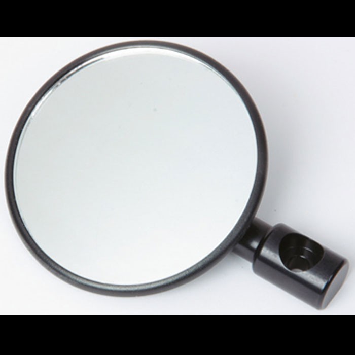 Sehr kleiner Minispiegel zur Befestigung am Lenkerende. Halter aus Alu.