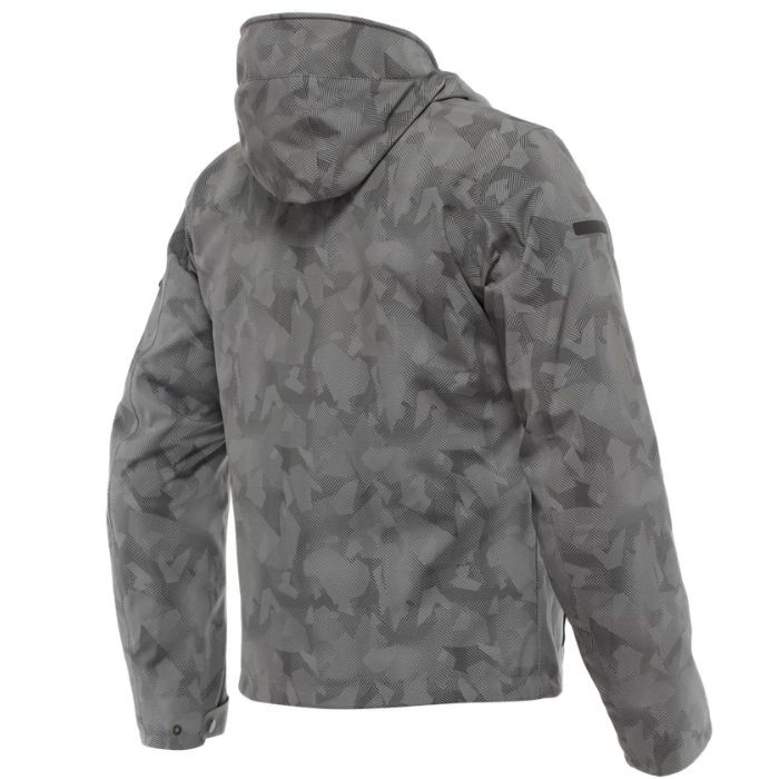 Die funktionale und modische Jacke Corso ist mit einer wasserdichten Kapuze mit einem internen faltbaren Metallkern (Uno Touch™ Hood Peak-Technologie) ausgestattet: einem System, mit dem Sie mit nur einer Hand einen Helmschirm schaffen können, der das Gesicht vor Witterungseinflüssen schützt und die Kapuze um das Gesicht festzieht.