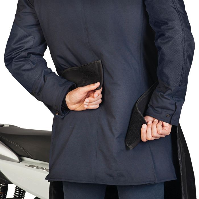 Ce tablier s'attache directement à la taille. Vite mis, vite rangé! Pas d'installation sur le scooter. Excellente protection contre la pluie et le froid.