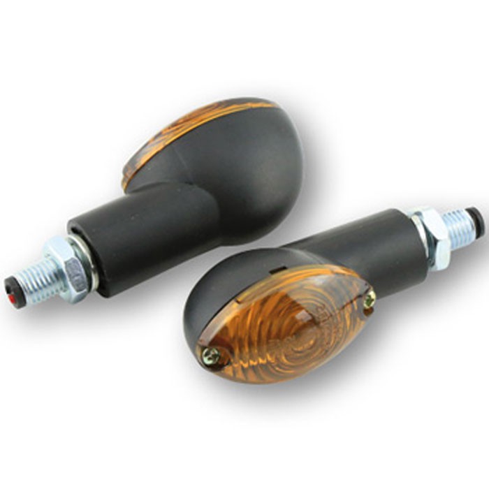 Petit clignotant halogène avec boîtier noir en plastique et verre teinté, conforme E. La paire.
