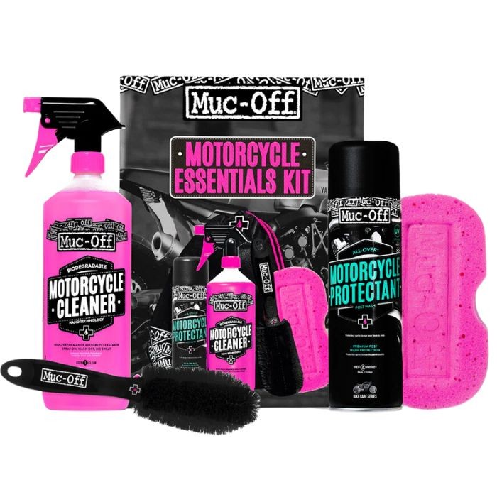 Le kit essentiel entretien moto de Muc-Off contient les produits d'entretien les plus importants pour un entretien global de la moto.