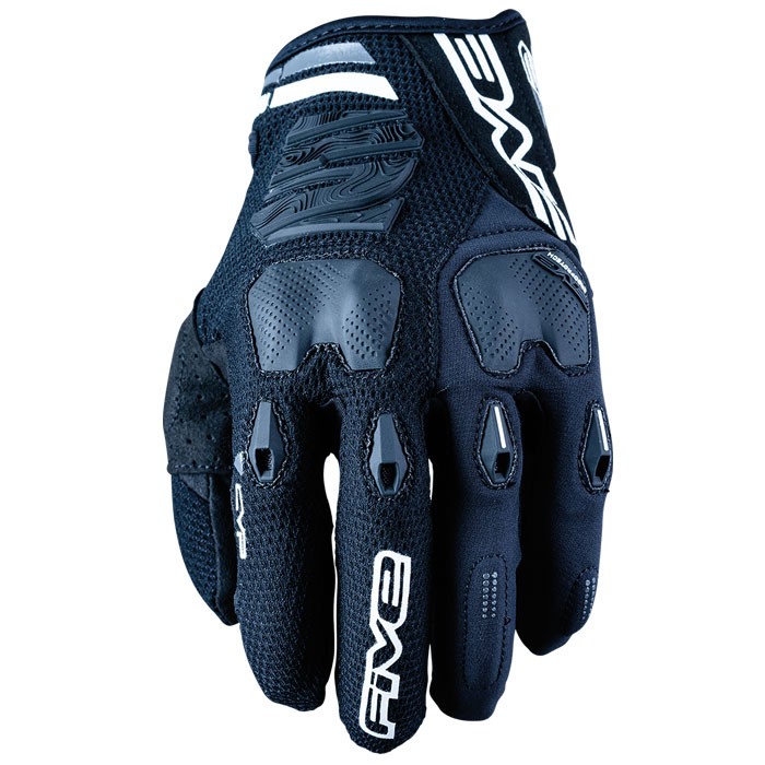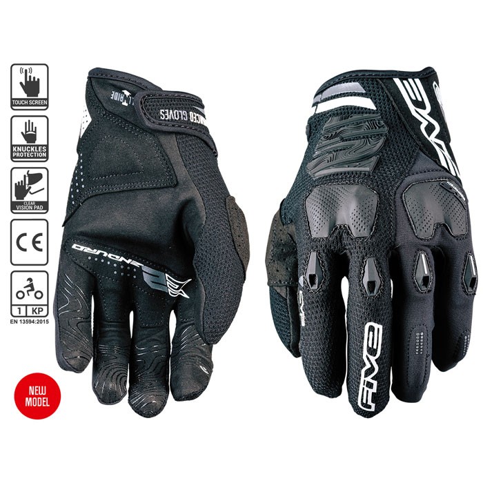 Voici le fruit de notre collaboration avec le quintuple Champion du Monde d’enduro, Steve Holcombe et le Champion du Monde E2 2019, Loïc Larrieu, après de longs mois de développement : E2, un gant véritablement pensé et conçu pour la pratique de l’enduro, loisir ou compétition. Il offre les performances d’un gant de motocross combiné à un niveau de protection supérieur, indispensable pour affronter les éléments rencontrés en pleine nature. Tels que les branches ou les cailloux, parfois bien agressifs… car on ne garde pas toujours les mains dissimulées derrière des protège-mains, notamment en cas de chute. Nous avons donc intégré juste ce qu’il faut de renforts ou de protections aux endroits stratégiques, en visant à ne jamais entraver les mouvements. C’est le cas de la double coque ERGO PROTECH® en TPR souple. Suffisamment protectrice en cas de contact avec un tronc ou un rocher, tout en étant quasi imperceptible au guidon. Un soin particulier a été apporté à la ventilation avec l’adoption d’un tissu mesh sur la moitié intérieure de la main, sans omettre de conserver des matériaux résistants sur la moitié extérieure, plus exposée aux frottements en tout genre (arbres, ronces, pierres). Et comme l’enduro impose de passer de longues heures au guidon, le contact avec les commandes se devait d’être accueillant et confortable. Le E2 est donc doté d’une paume en AX Suede® Durango™, un matériau à la fois adhérent, agréable et résistant, et de coussinets de mousse rubber 2mm sur la paume et 3M®m au pouce. Vous l’aurez compris, avec le E2, FIVE propose un gant spécifique Enduro qui fera vite référence